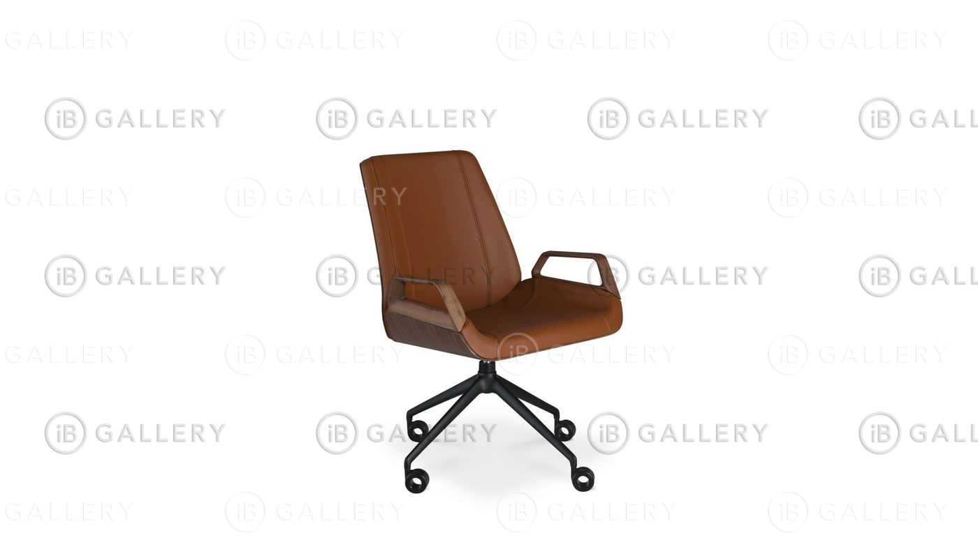 Оснащено колесиками, вращается и откидывается назад с регулируемым подголовником. Может быть обито кожей или тканью. Подлокотники из массива грецкого ореха. Сиденье регулируется по высоте от 120 см до 128 см.