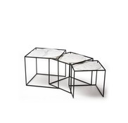 3 ножки соединены планкой из нержавеющей стали, покрытой позолоченным лаком. Столешница из каррарского мрамора с 3 деталями из нержавеющей стали, покрытыми позолоченным лаком, на фанерной опоре толщиной 19 мм.
