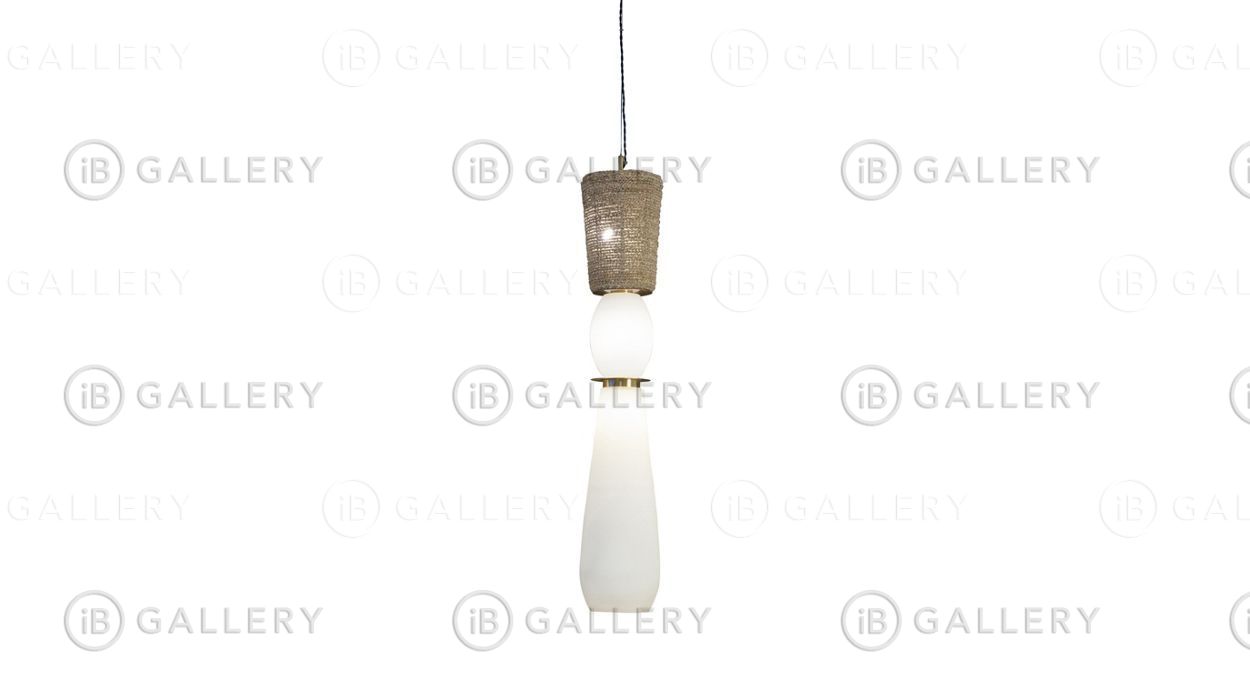 Светильник из дутого стекла, плетеных изделий и латуни. Источник света - светодиодная лампа G9x1 и светодиод E27x1.