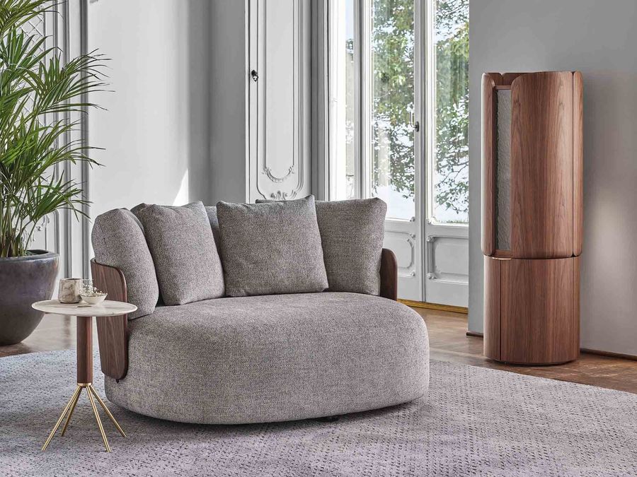 Спинка, выполненная из изогнутого многослойного ореха canaletta, содержит верхние подушки, обеспечивая ощущение стабильности структуре. Спинка и сиденье обиты тканью, с возможностью выбора из различных вариантов, доступных в коллекции, и имеют съемные чехлы для обеспечения легкого ежедневного ухода за продуктом. Для завершения общего вида Calin XL предусмотрены три мягких задних подушки и две боковые.