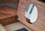 Внутри отсека для хранения, дно которого также обшито кожзамом, круглое зеркало повышает функциональность этого объекта из ореха canaletta. По своим размерам и элегантности Moty подходит для оформления рабочей зоны или спальни.