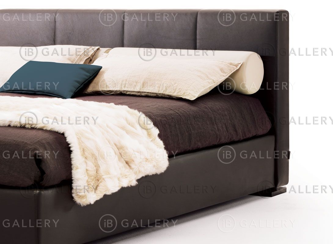 Изголовье кровати полностью покрыто тканью и кожей как спереди, так и сзади.