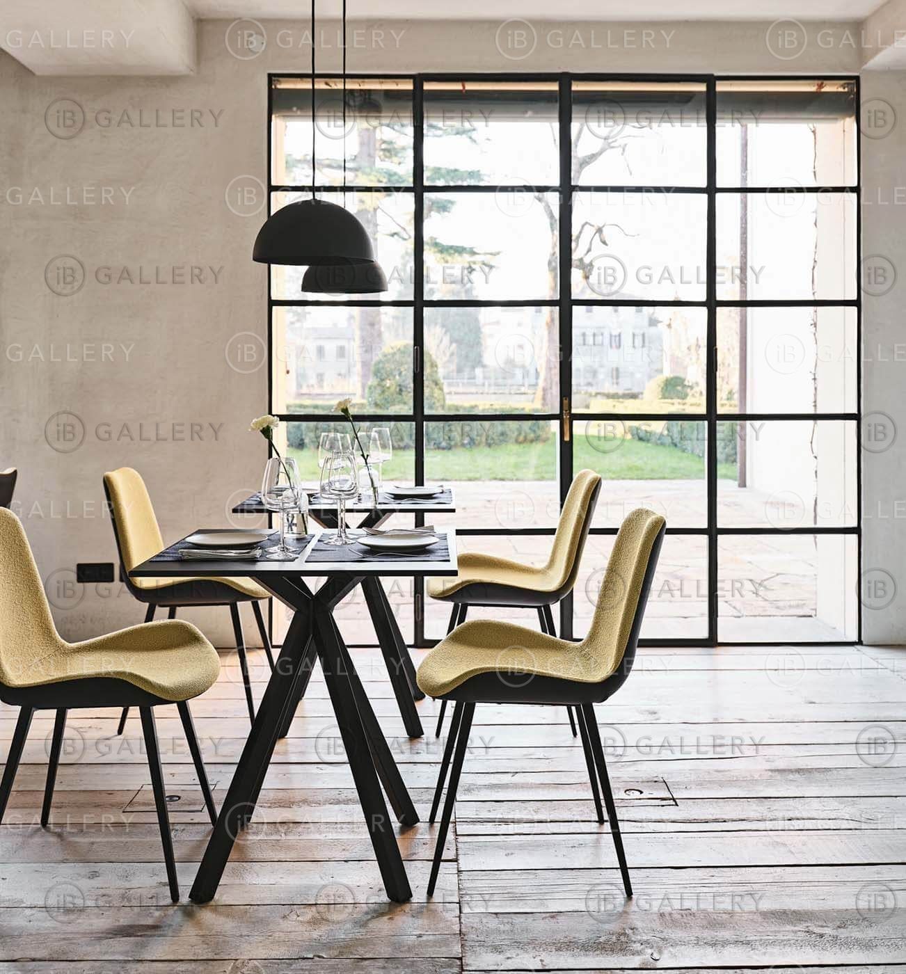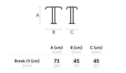 Основание для стола с четырьмя ножками из лакированной стали доступна в двух вариантах высоты (h73 и h110 см - 28,7 и 40,6 дюйма).