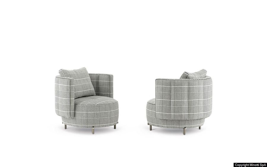 Модель Torii Bold отличается контрастом между большими, мягко закругленными объемами обивки и легкостью металлического основания, на которое она опирается.