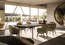 Доступный в четырех размерах, длиной от 250 до 400 см, он улучшает эстетические и текстурные свойства темно-коричневого окрашенного palisander Santos с матовым покрытием из полиэстера и черного лакированного ясеня с открытыми порами, а также темно-коричневого окрашенного palisander Santos в сочетании с мрамором Sahara Noir с матовым покрытием из полиэстера.