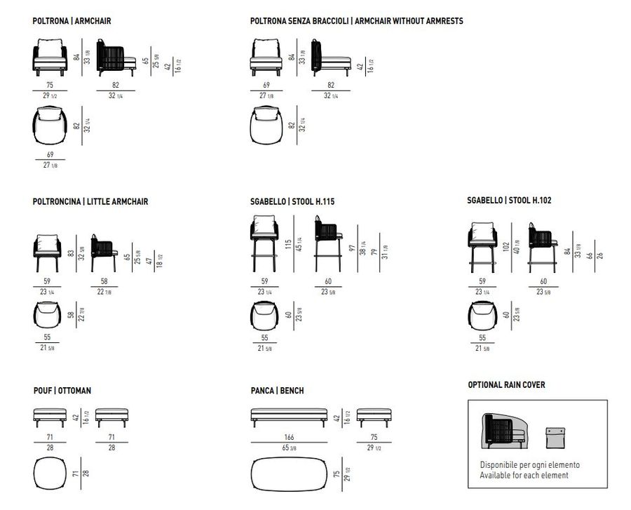 Семейство кресел Tape, дебютировавшее в 2018 году, естественным образом развивается, включая элементы для уличной обстановки, которые сохраняют неоспоримую элегантность форм и концепций дизайна, а также добавляют несколько приятных вариантов, отражающих концепцию жизни на открытом воздухе. Сиденья стали глубже, больше и удобнее, а металлический каркас с новой наружной отделкой покрыт плетеными шнурами, которые доступны в двух цветах: грязевом и лакричном.