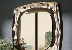 Отделка зеркал представлена в дымчатом и бронзовом стекле. Модель отличается игрой отражений и изогнутыми формами.