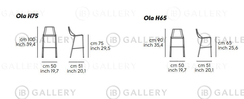 Представлен с каркасом из окрашенного металла. Сиденье и спинка обтянуты кожей. Доступны версии в двух высотах.