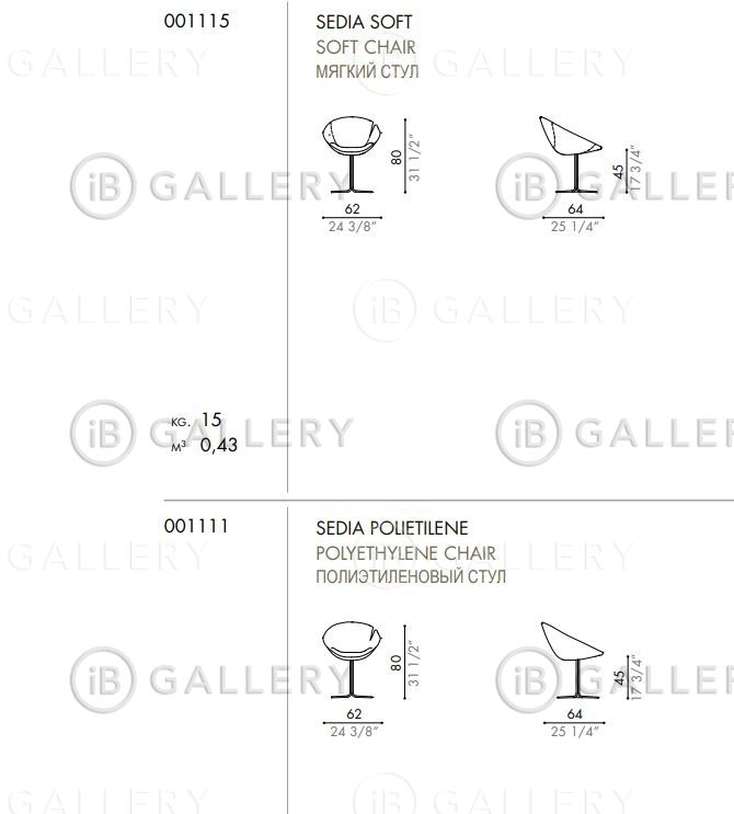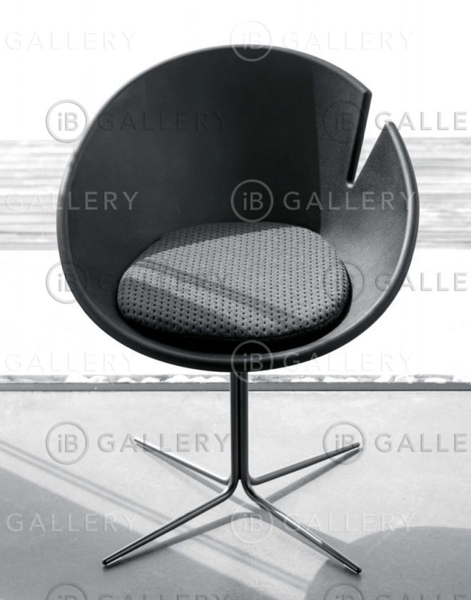 Основание представлено в металле. Обивка в ткани или коже, также сидение может быть сделано из полиэтилена.