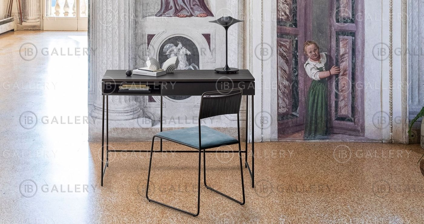 Стул Merine, разработанное научно-исследовательским центром Desiree, идеально сочетается с письменным столом Rito. Это дополнительное изделие выполнено из металла, что придает ему воздушный вид.