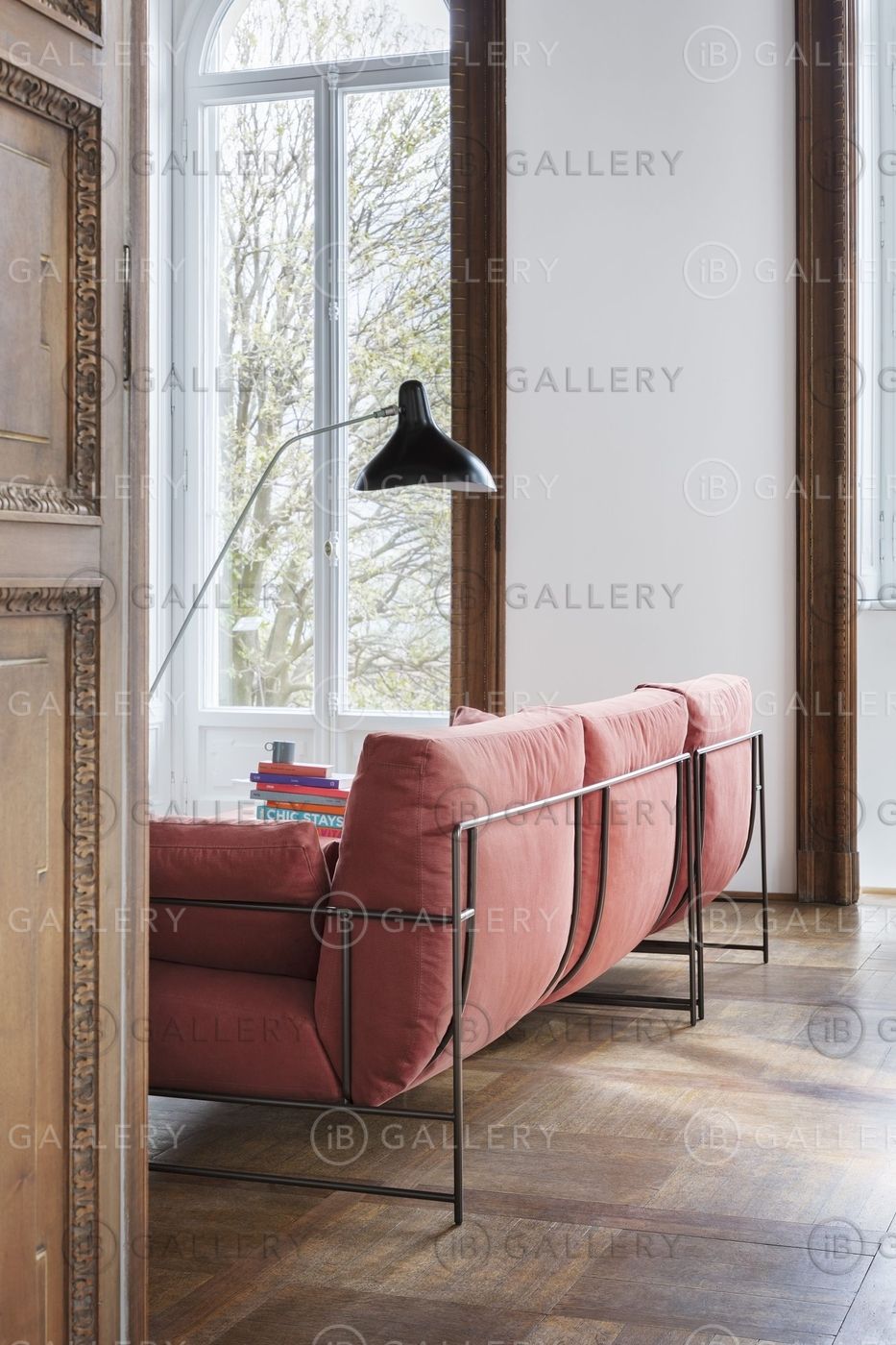 Элегантный диван в обивке из ткани или кожи