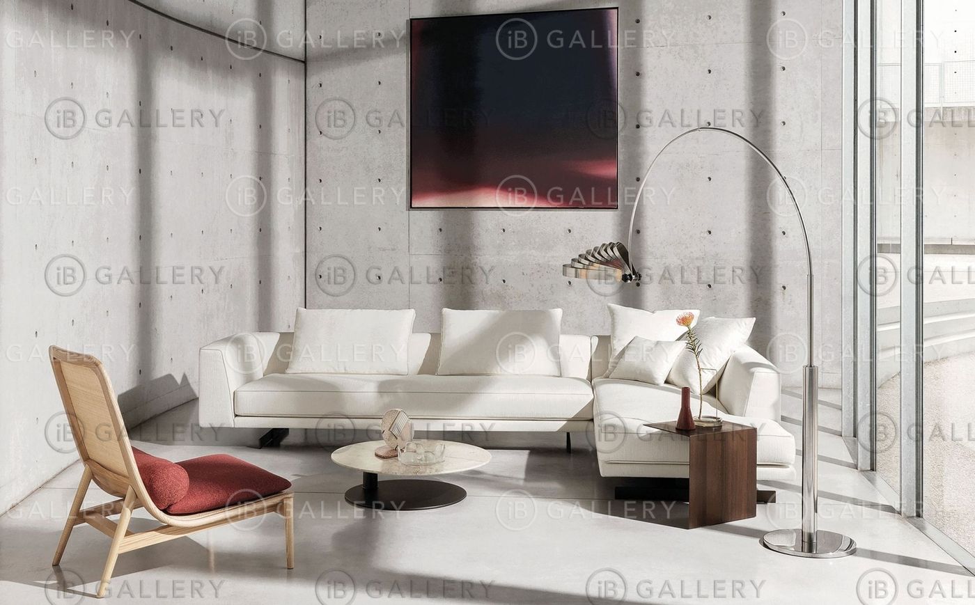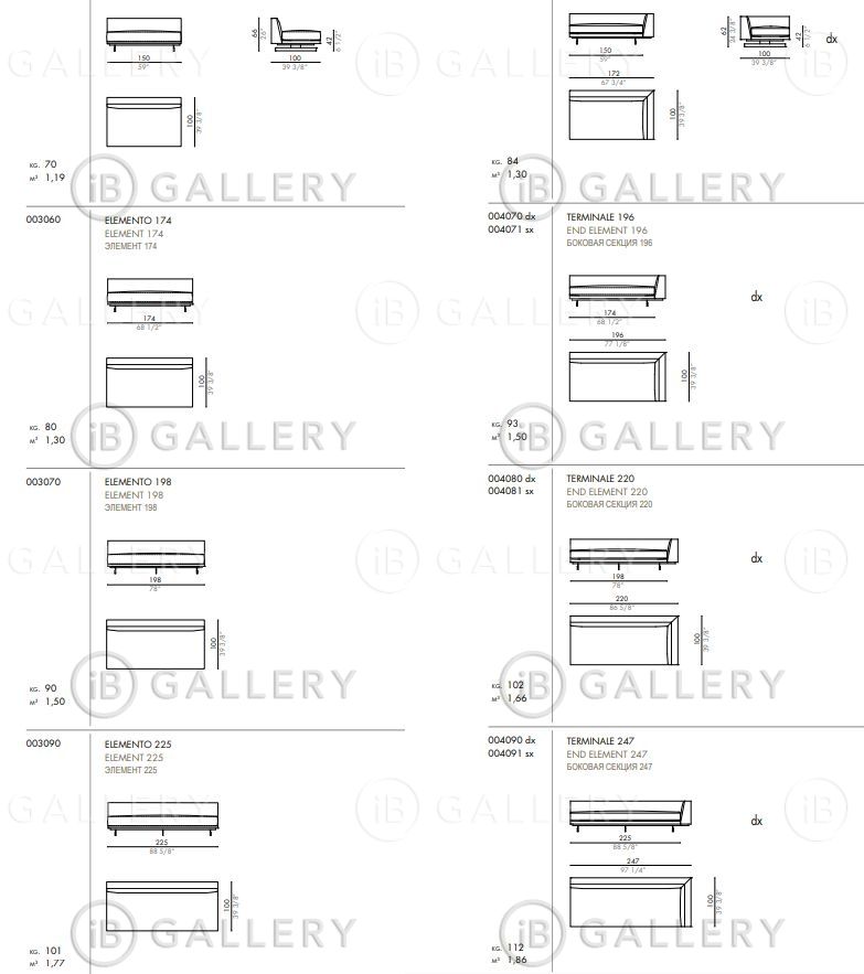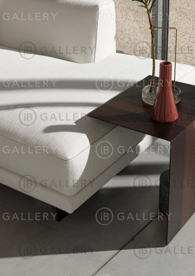 Трапециевидная спинка и подлокотник, обтянутые съемной тканью или кожей, сочетаются с удобным сиденьем с настраиваемыми подушками.