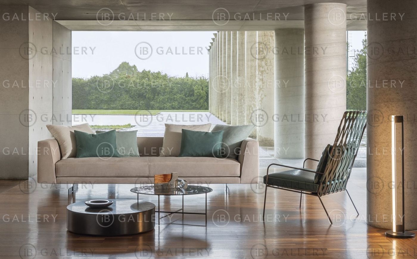 Диван Sheridan отличается четкими и симметричными линиями, широкими подлокотниками, элегантной окантовкой по контурам и металлическим основанием бронзового цвета, которое придает этому предмету мягкой мебели искру утонченного великолепия.