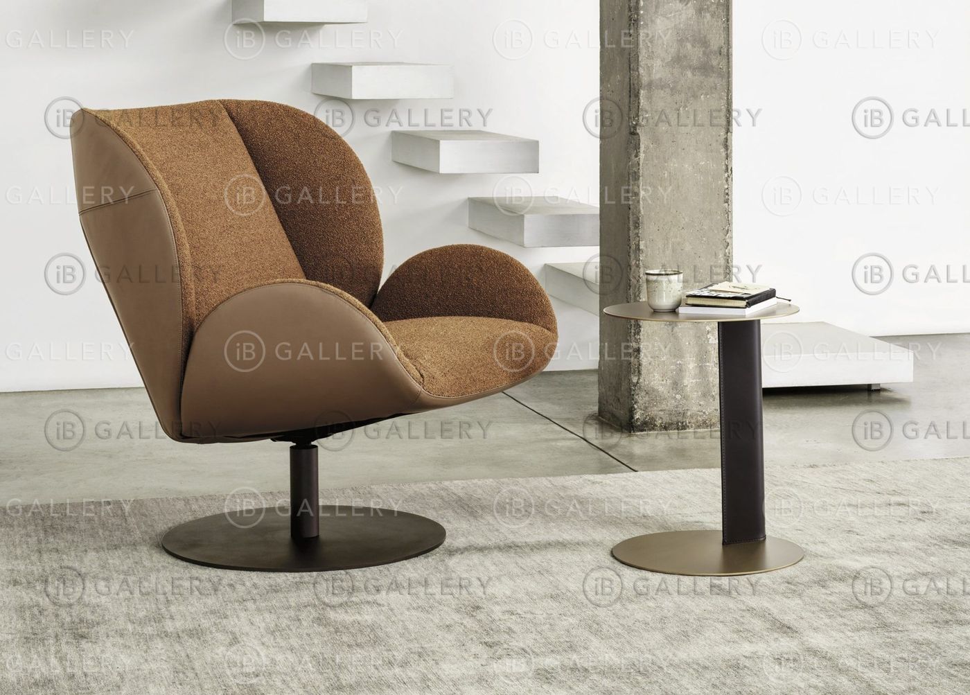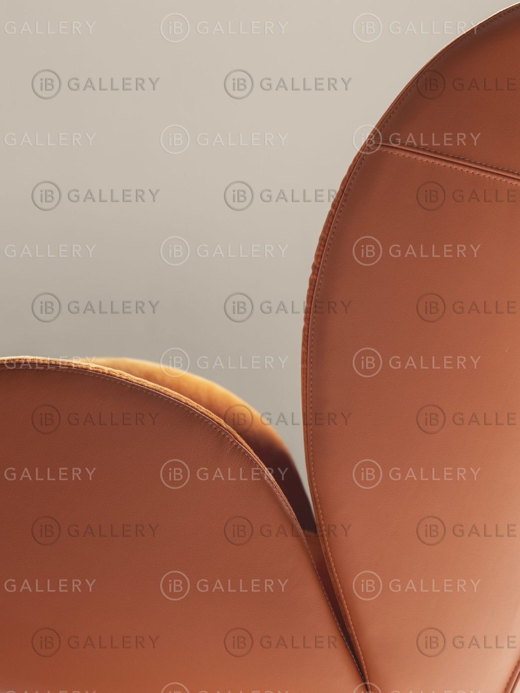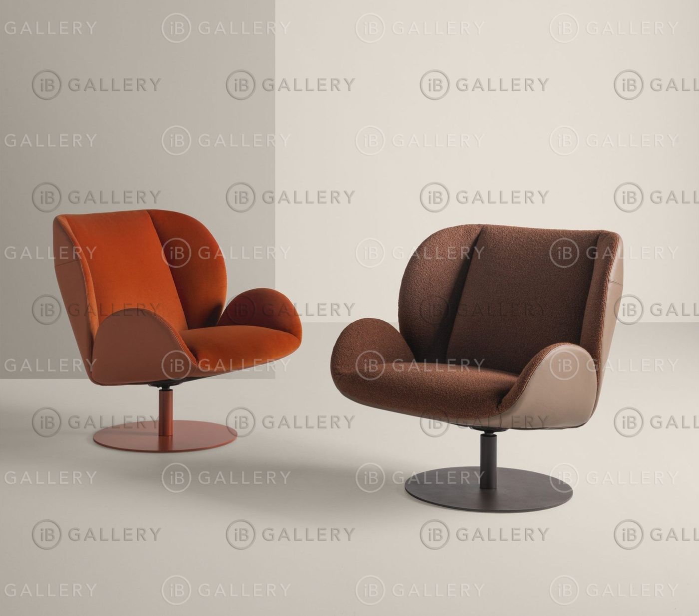 Кресло для отдыха с мягкой фанерной структурой, обитой кожей или тканью.