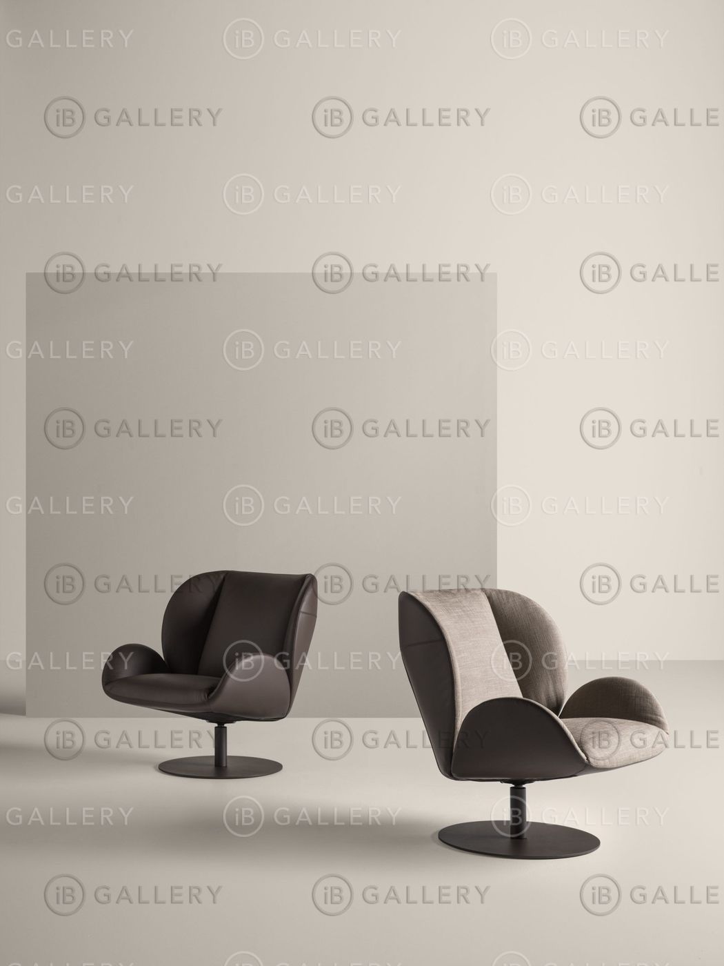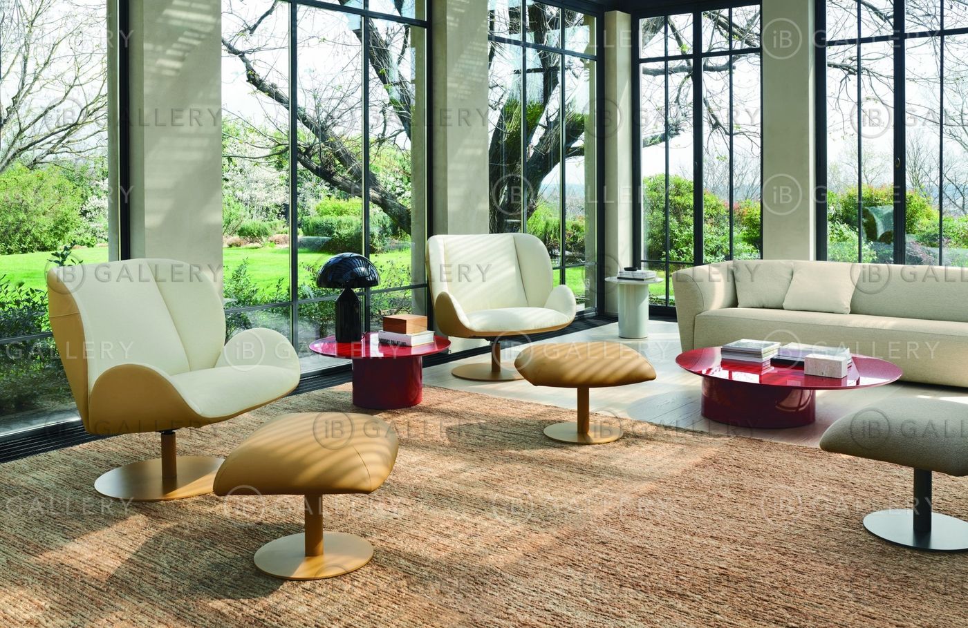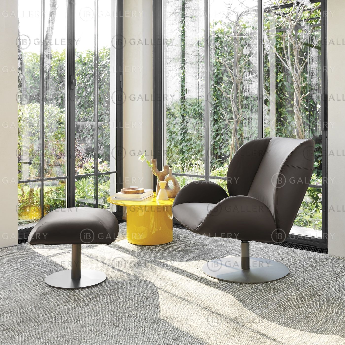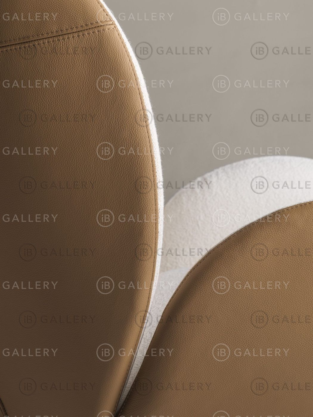 Кресло для отдыха с мягкой фанерной структурой, обитой кожей или тканью.
