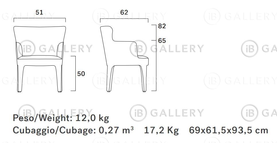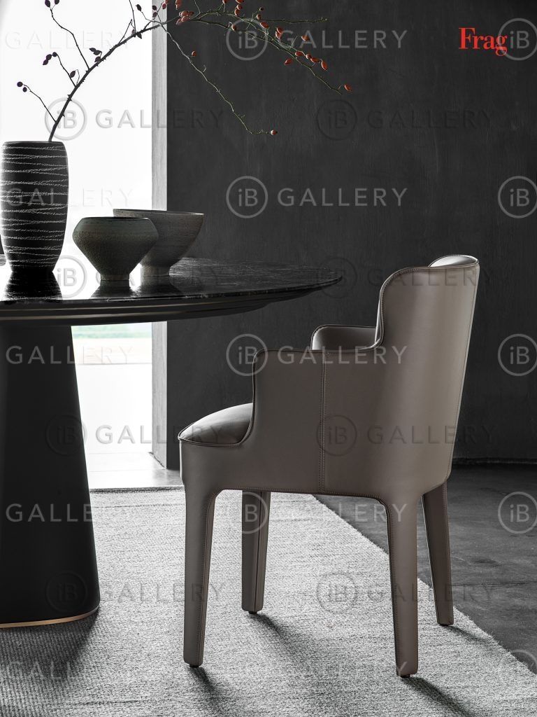 Стул словно очерчен единой линией, которая определяет ножки, сиденье, спинку и закругленные подлокотники, которые в кресле переходят в прямую линию, завершающую спинку.