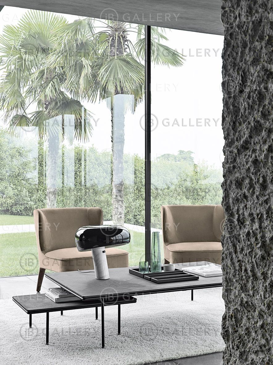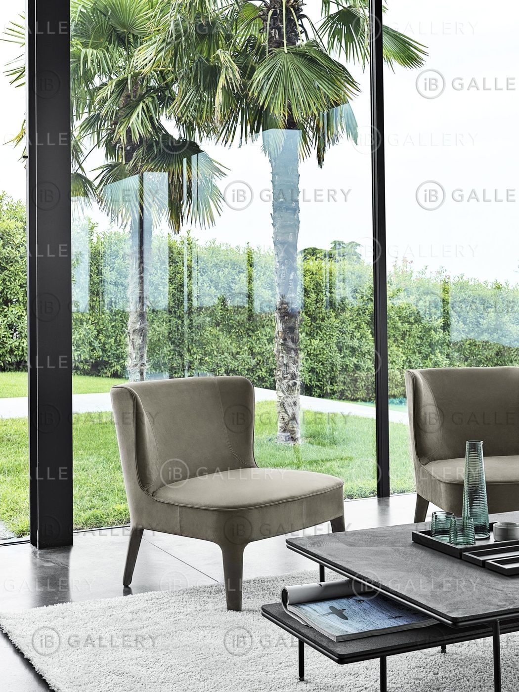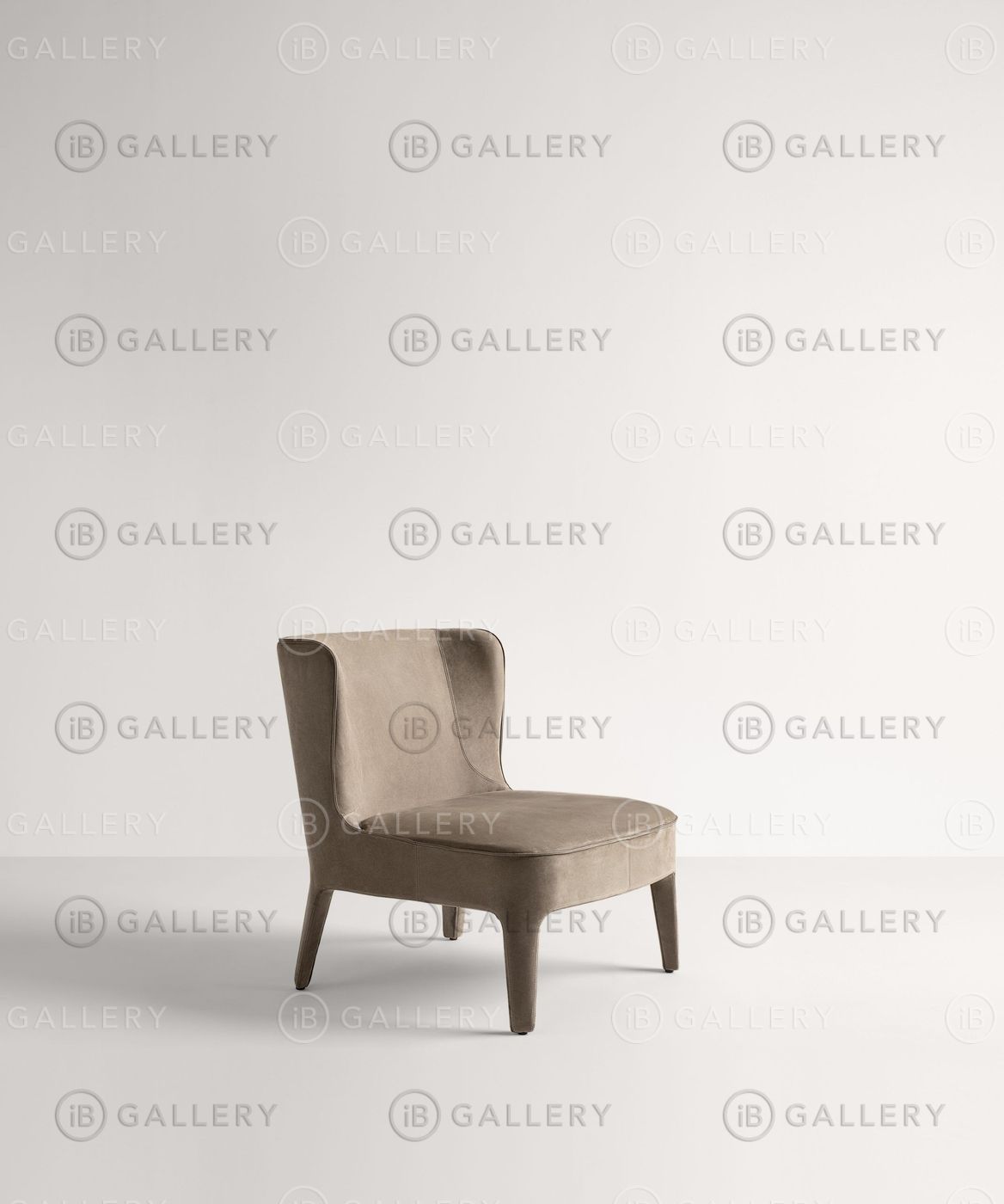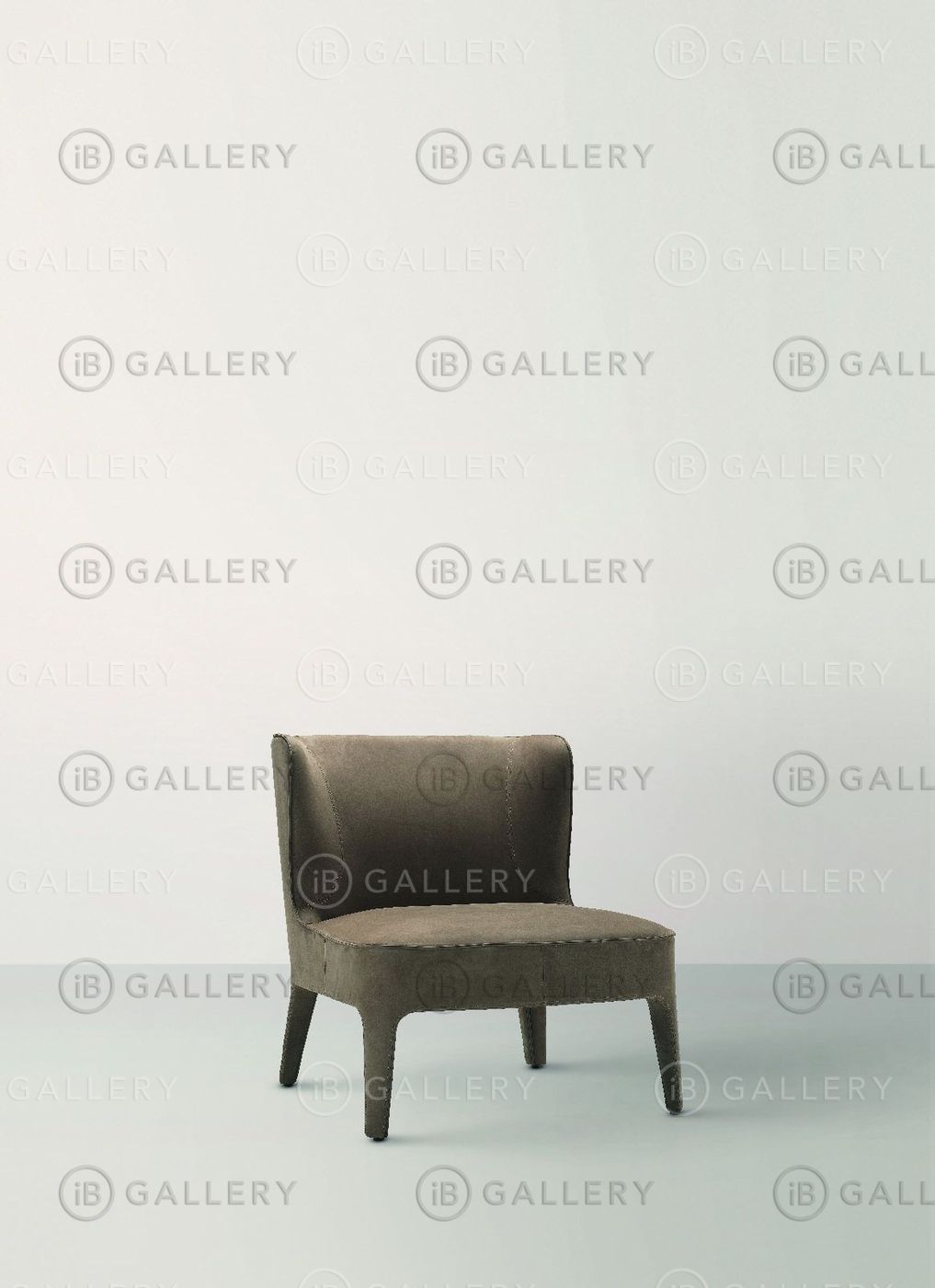 Кресло представлено без подлокотников. Обивка представлена в ткани или коже.