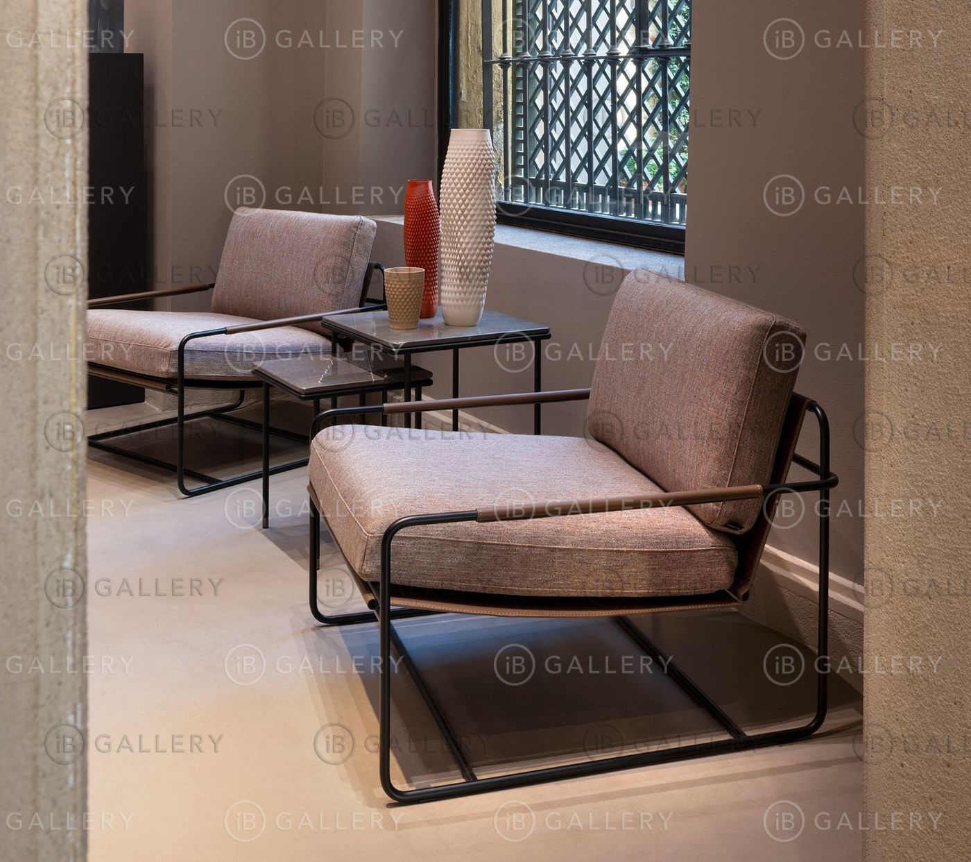 Riviera - это кресло для отдыха с элементами модернизма, в котором используются металлические трубки, а современный декоративный эффект достигается за счет полированной латунной отделки и сочетания кожаных подушек и кожаной обивки сиденья и спинки.