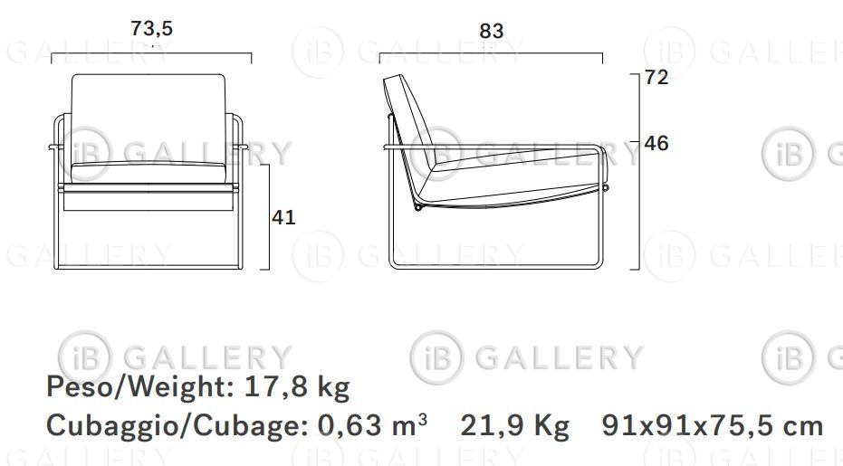 Трубчатая рама состоит из нескольких прямоугольников, образующих основание, подлокотники и несущую конструкцию, к которой крепится кожаное или текстильное сиденье в форме гамака.