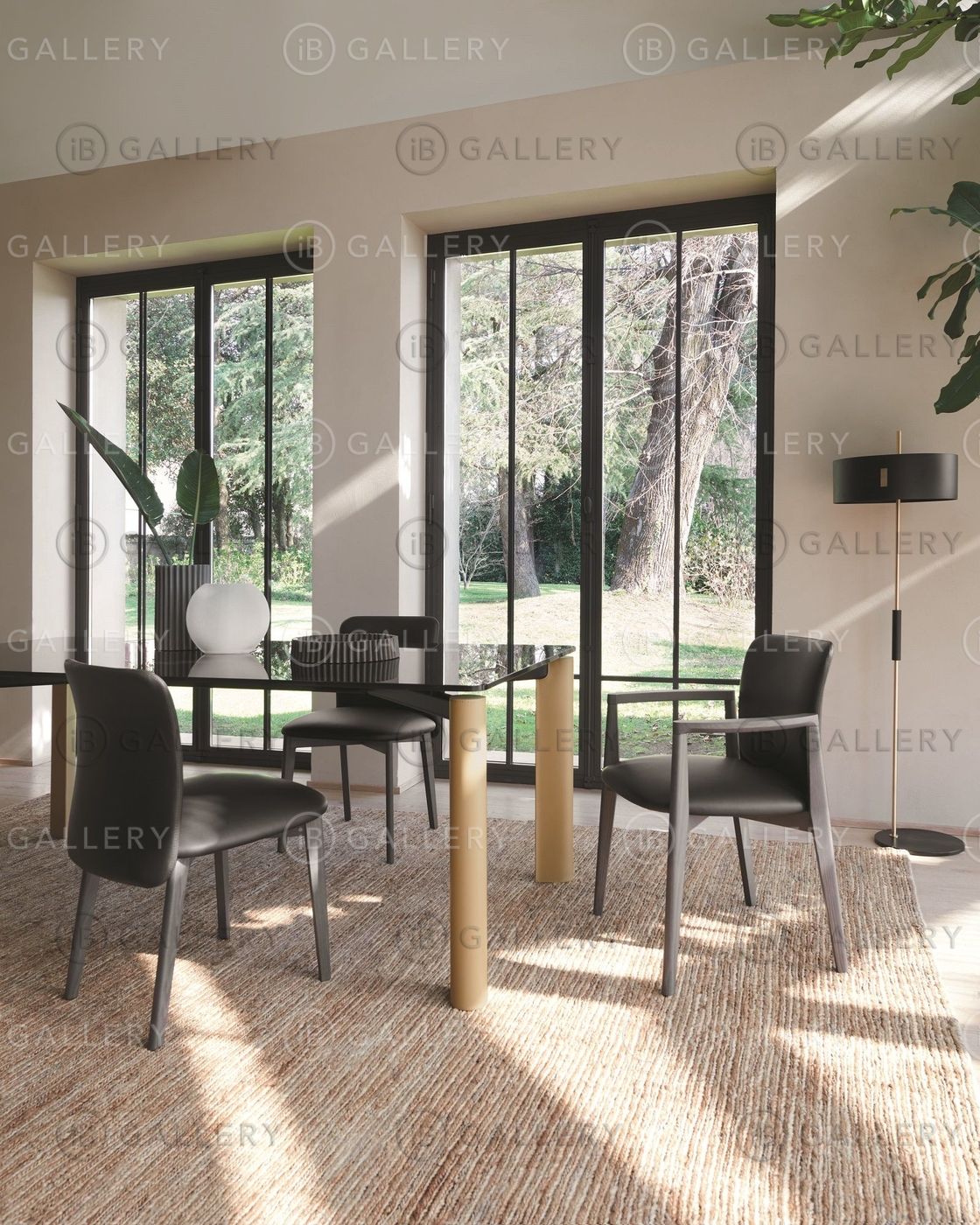 Siloe - это серия кресел, состоящая из стула, кресельного кресла и табуретов сдержанного и гармоничного дизайна. Все семейство отличается мягким сиденьем. Спинка соединяется с сиденьем ироничным изгибом и выступает за пределы сиденья, как бы защищая его.