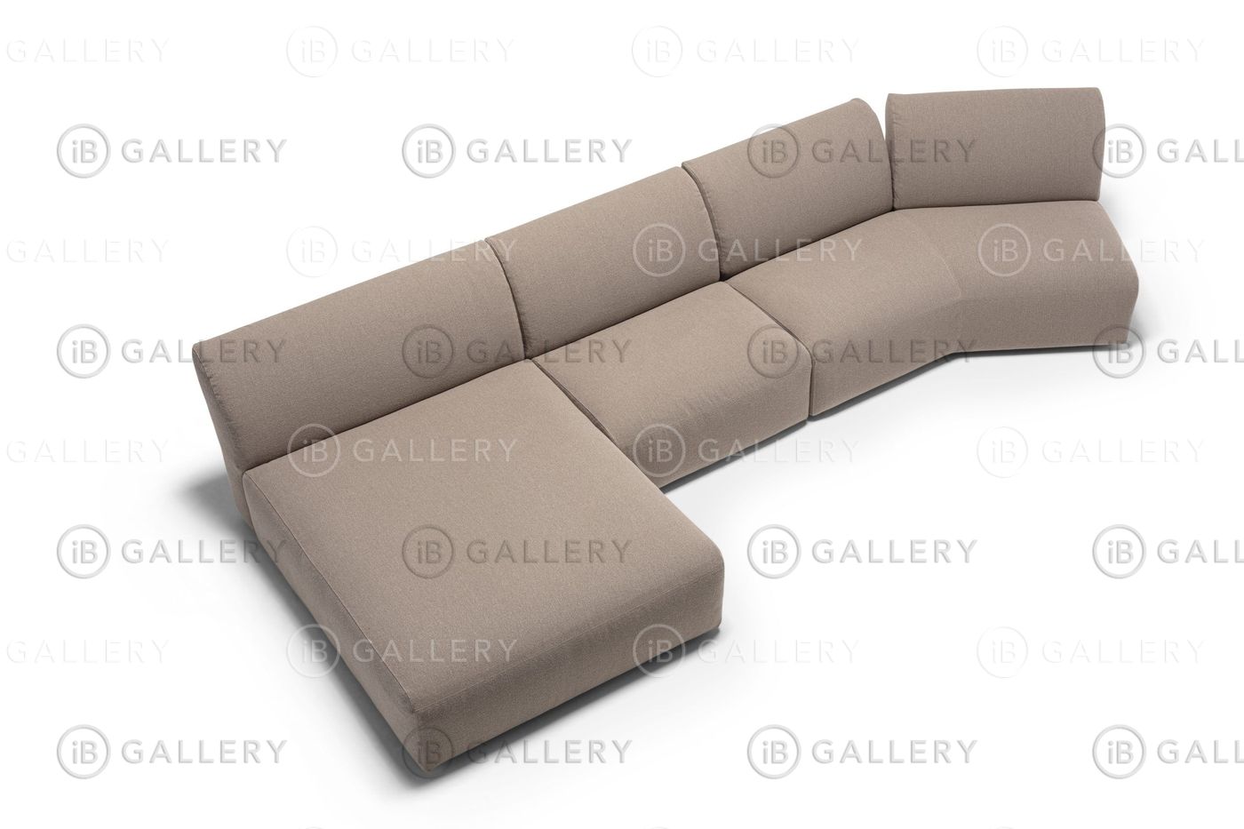 Доступны с кожаной или тканевой обивкой. Тканевые модули полностью снимаются с помощью ремешков на липучках. Соединение элементов осуществляется с помощью специальных металлических элементов, которые легко снимаются. Ножка из синтетического материала.