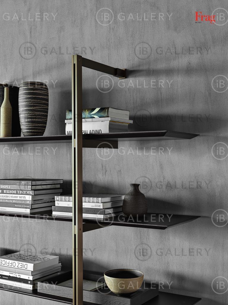 Дизайн металлических элементов, выполненный в почти индустриальном и конструктивистском стиле, создает завораживающий контраст с изысканностью отделки из полированной латуни и дорогой кожаной обивкой полок, создавая объект с особым характером и декоративной эстетикой.
