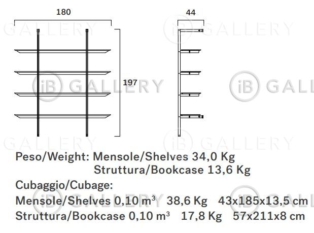 В конструкции в качестве стоек используются два вертикальных бруска прямоугольного сечения, которые пересекаются и прикрепляют по пять горизонтальных брусков с каждой стороны: четыре служат опорами для полок, а пятый крепится непосредственно к стене.