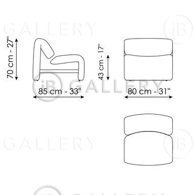 Спинка и сиденье представляют собой две уникальные детали, состоящие из единых изогнутых линий, соединенных металлическим стержнем: пространство между элементами не только облегчает визуальное восприятие, но и создает эффект подвешенности, в тонкой игре баланса.
