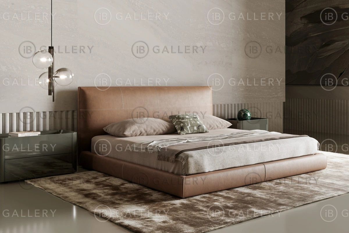 - Стильная кровать в кожаной обивке