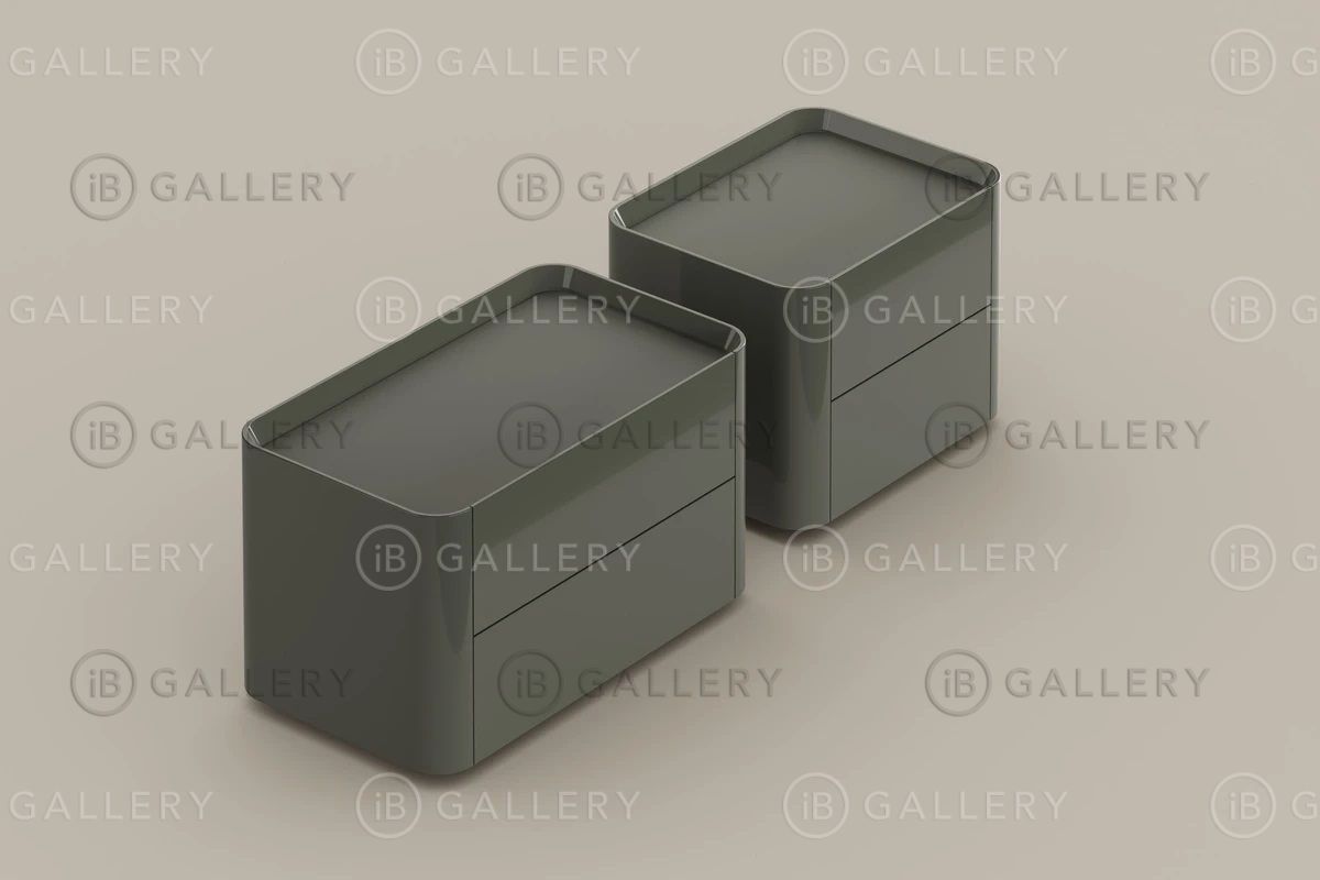 - Прикроватная тумбочка с двумя ящиками в современном стиле.