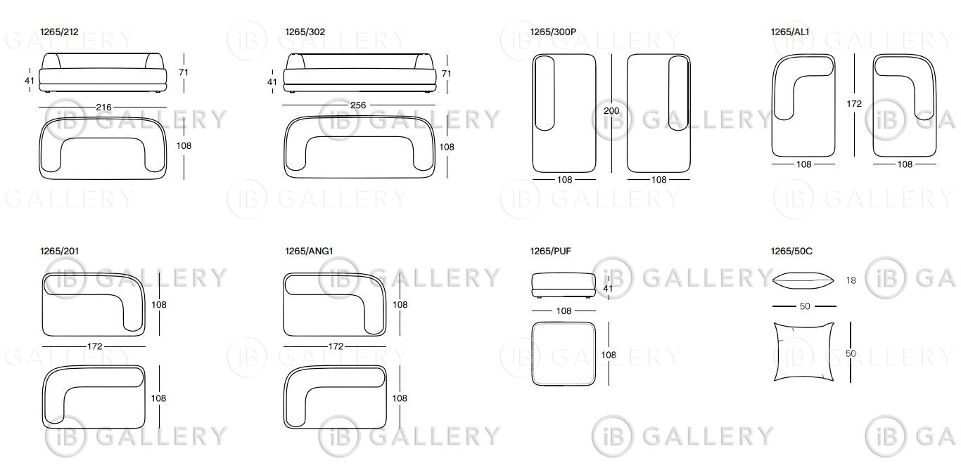 Моноблочные и модульные диваны, пуфы и подушки. Каркас выполнен из дерева. Подвеска из эластичных лент.