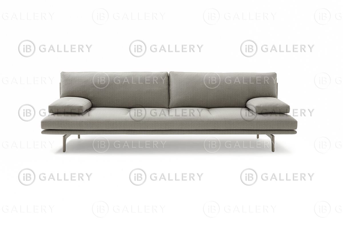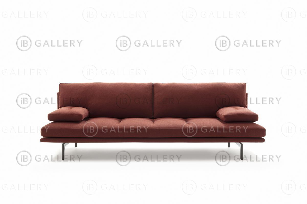 Широкое сиденье разделено на вертикальные полосы параллельной строчкой, а прямоугольные подушки служат как спинками, так и подлокотниками, что является неформальным подходом к обивке. Ножки из алюминиевого сплава, которые стали более современными по форме и материалу, придают новую легкость и стройность очертаниям общего объема. Элегантный, изысканный диван с неподвластным времени дизайном. Съемный чехол из ткани или кожи.