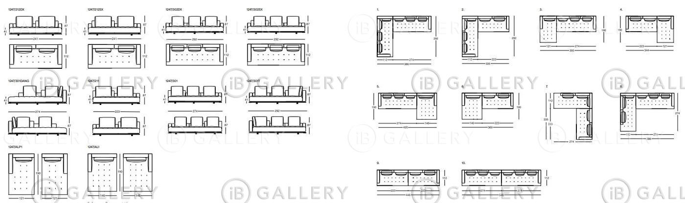 - Модульная диванная система из 3 частей в обивке из ткани или кожи