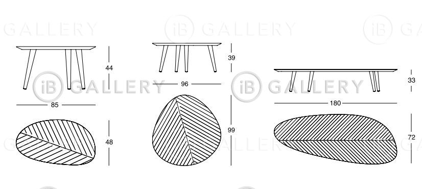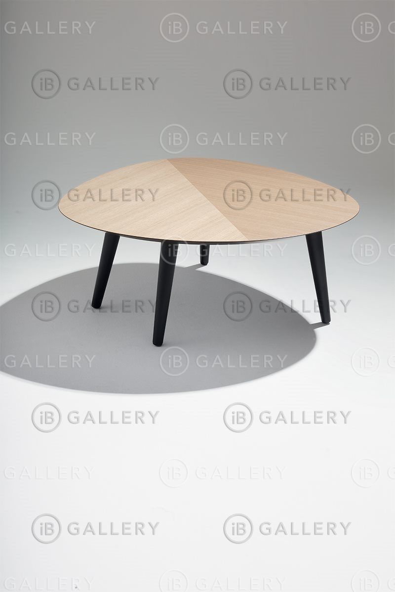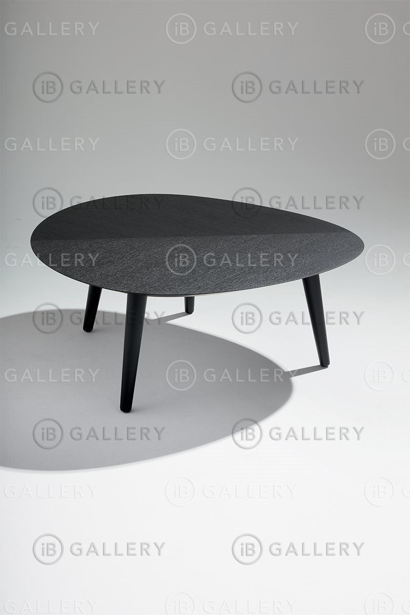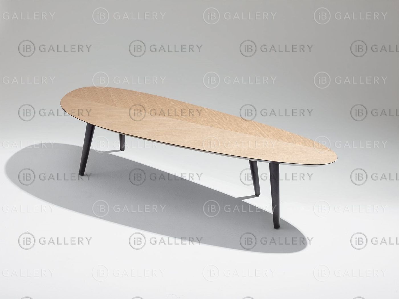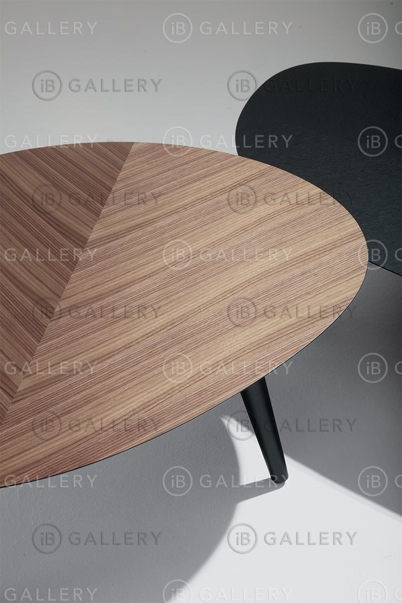 Столешница может быть выполнена либо из натурального окрашенного дубового шпона, либо из черного шпона с открытыми порами, либо из орехового шпона Canaletto. Нижняя поверхность окрашена в черный цвет. Ножки из трубчатой нержавеющей стали, окрашенной в черный матовый цвет.