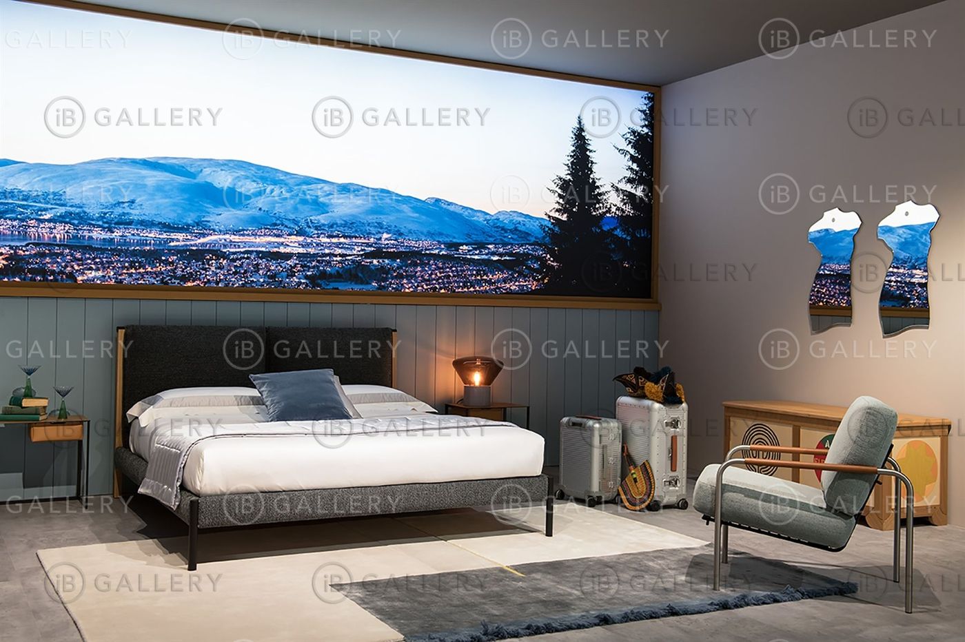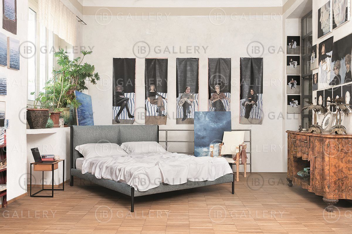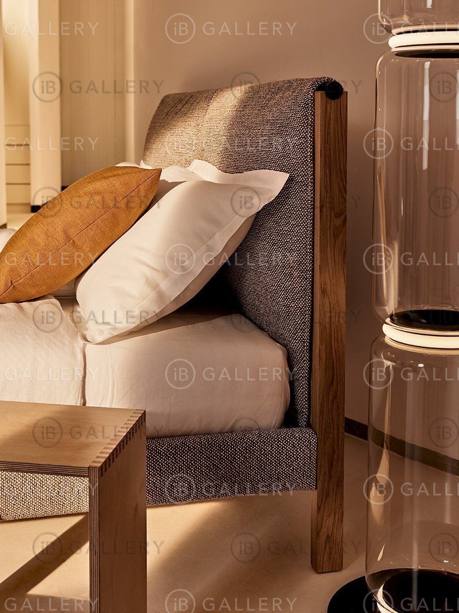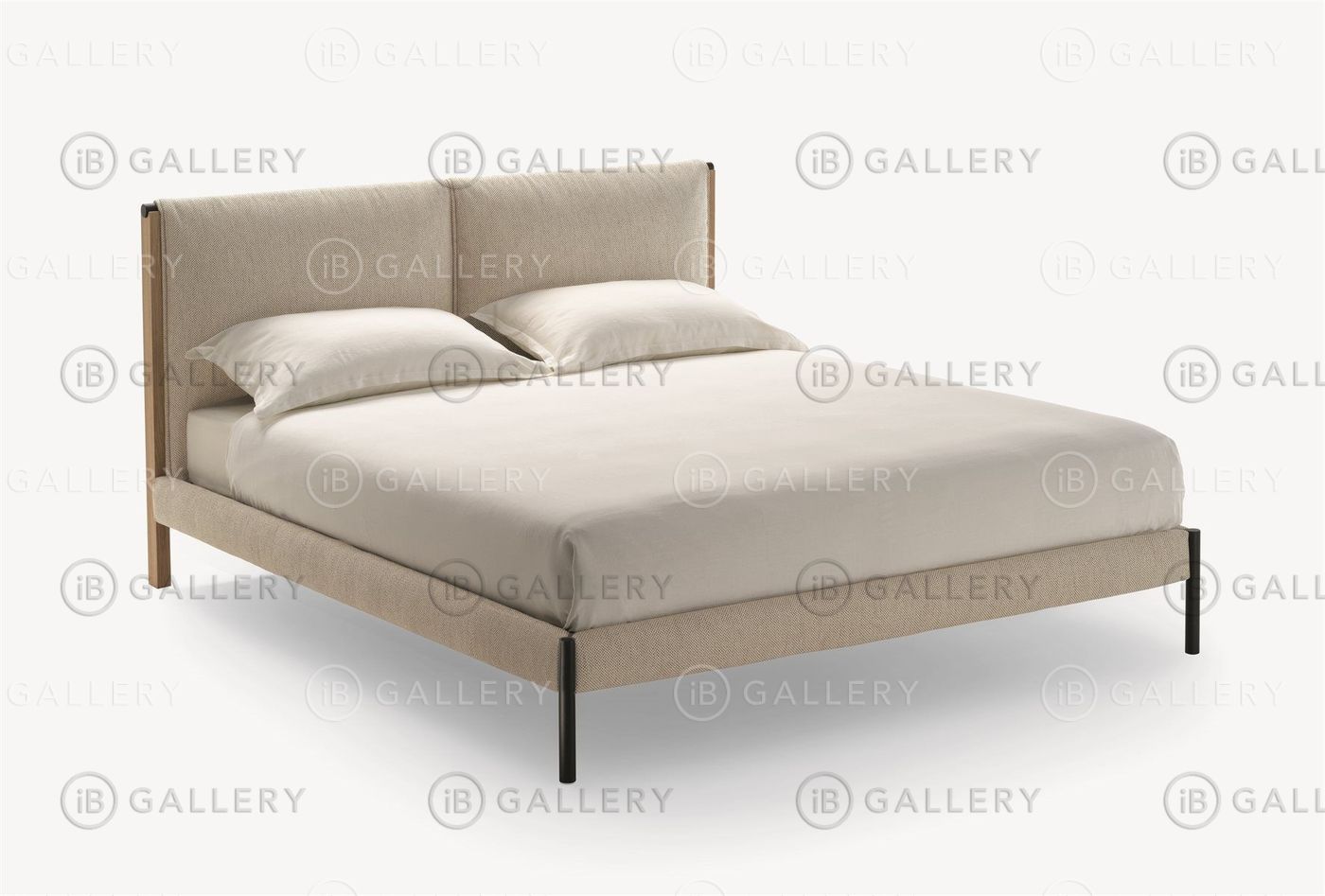 Кровать с простой конструкцией и безупречными деталями, которая олицетворяет интимность жизни. Мягкое изголовье кровати обеспечивает комфорт при чтении, горизонтальная перекладина и ножки выполнены из металла, окрашенного в матовый черный цвет, и мягко сочетаются с натуральным или окрашенным в черный цвет ясенем вертикальных стоек.