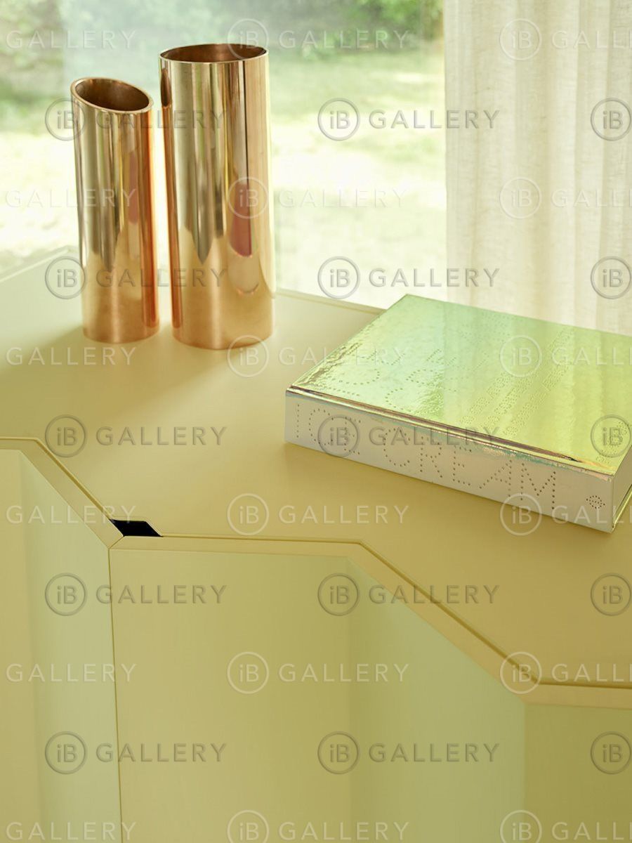 Каркас из МДФ и массива дерева, покрытый матовым лаком, доступно несколько расцветок. Регулируемые внутренние полки из закаленного зеркального стекла. По запросу в шкаф можно встроить нейтральный светодиодный источник света.