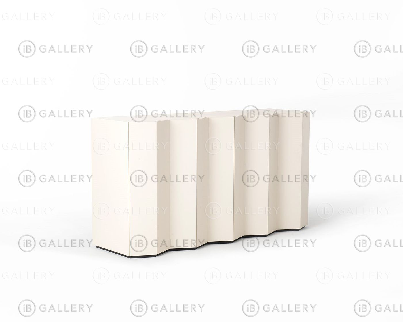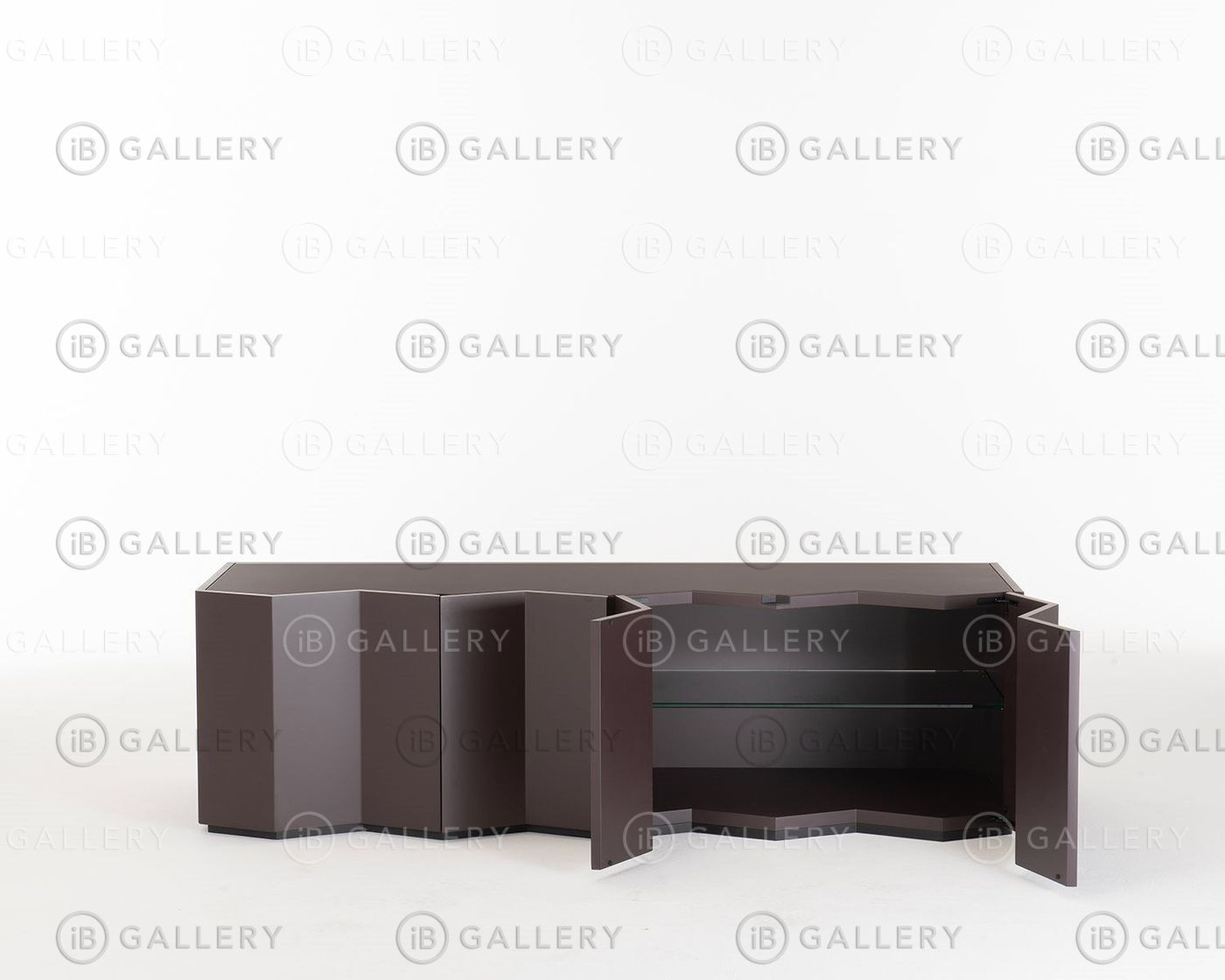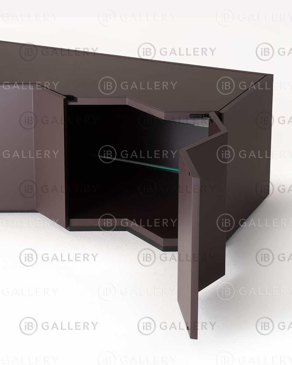 Каркас из МДФ и массива дерева, покрытый матовым лаком, доступно несколько расцветок. Регулируемые внутренние полки из закаленного зеркального стекла. По запросу в накопитель можно встроить нейтральный светодиодный источник света.