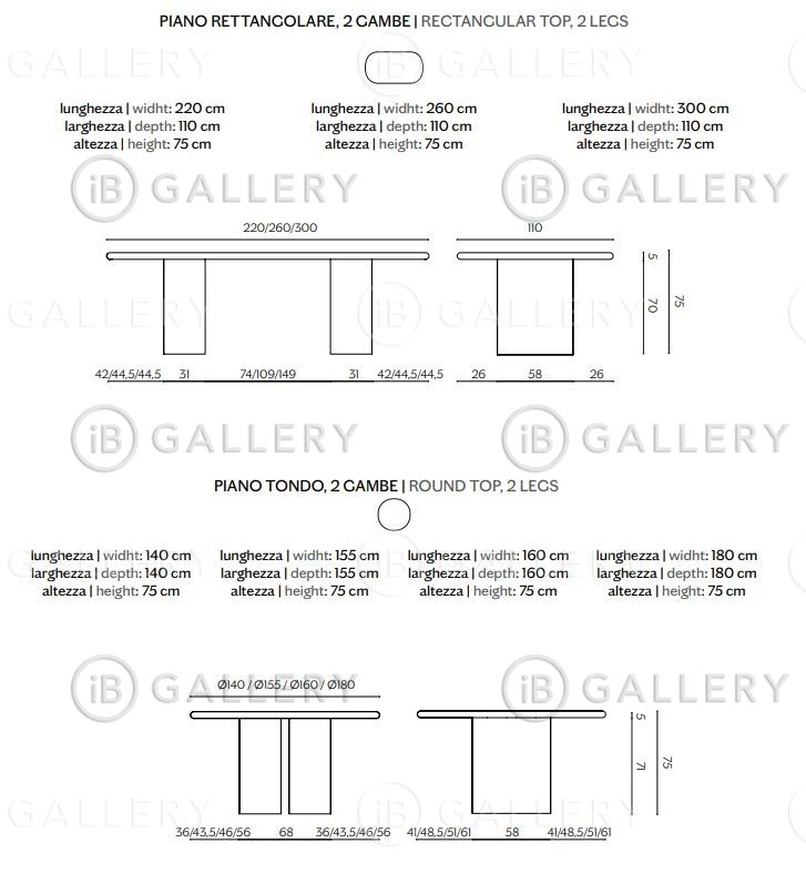 Стол оснащен изогнутыми металлическими ножками доступен в бронзовом исполнении или покрыт лаком в цветах, указанных в каталоге Campionario.