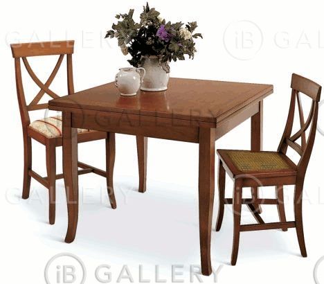 Обеденный стол-трансформер выполнен из дерева с квадратной столешницей.