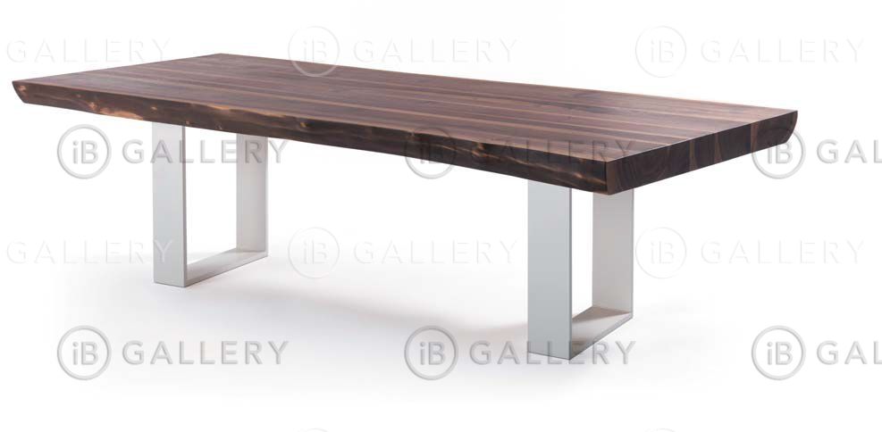 Обеденный стол на двух сдвоенных ножках из железа в сером или белом цвете.