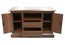 Подставка для телевизора выполнена из древесины в коричневом цвете.