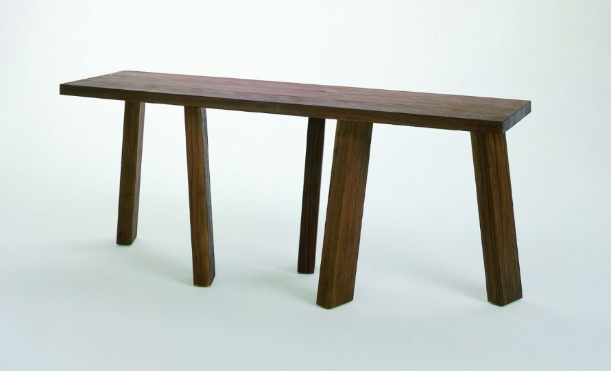Консоль с прямоугольной столешницей, выполненной из дерева.