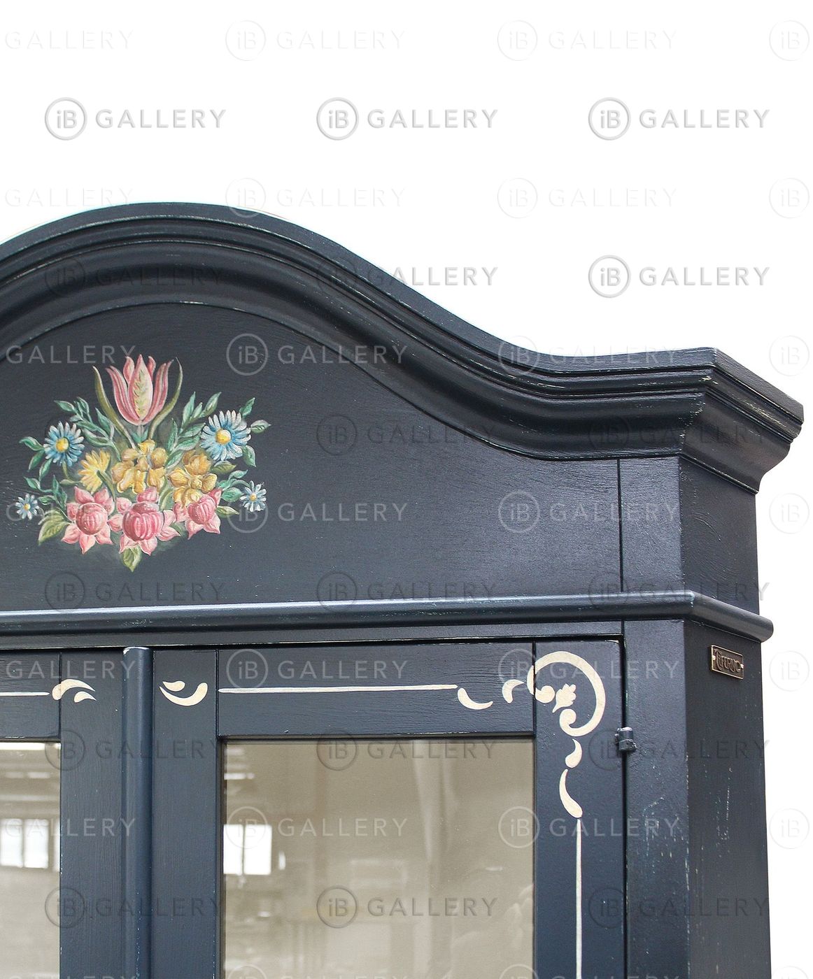Оснащен двумя застекленными дверцами и четырьмя внутренними полками.