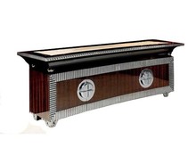 Отличительные черты этой модели - резные элементы, и благородное сочетание золотого, черного и красноватого оттенка древесины, строгость и простота формы.