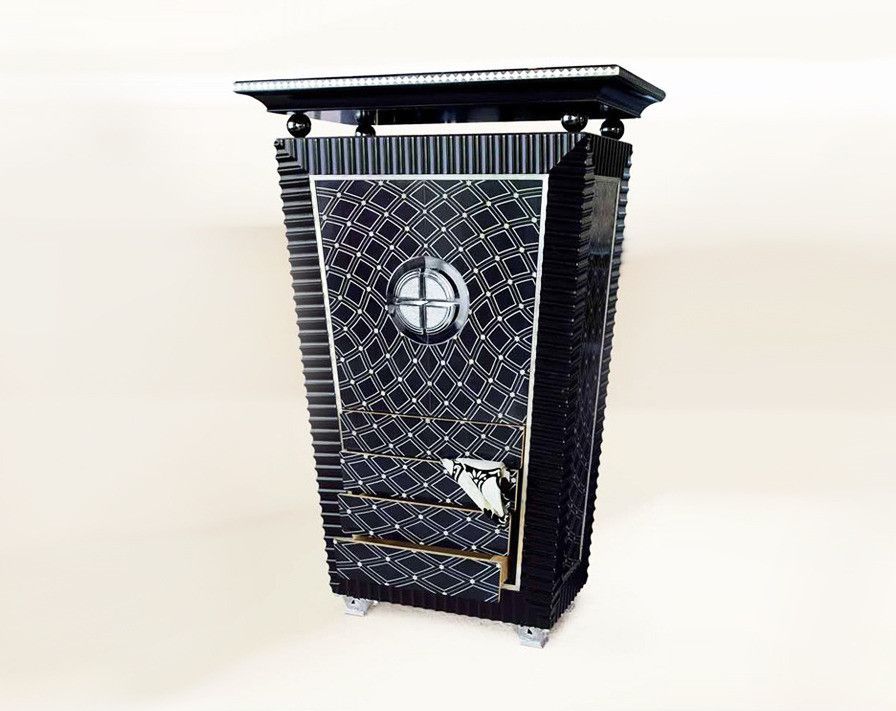 Двухдверный комод причудливой формы с искаженным ритмом орнамента – эта модель похожа на отражение в кривом зеркале.