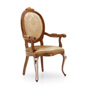 Удобное небольшое кресло в классическом стиле с каркасом из бука. Резьба на ножках и спинке может быть покрыта лаком с эффектом сусального золота или серебра.Обивка может быть выполнена с использованием гвоздей, тесьмы, двойного или одинарного канта.