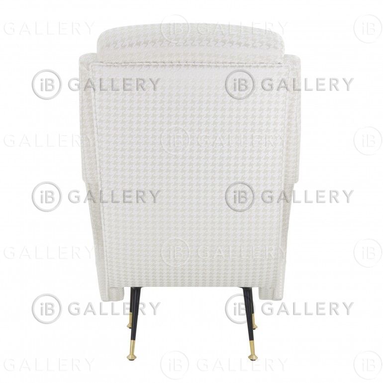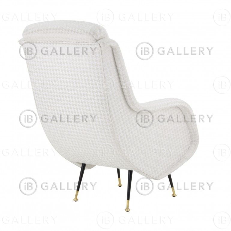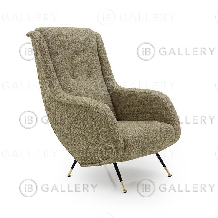 Ножки сделаны из металла. Спинка украшена двумя кнопками. Ткань может быть предоставлена заказчиком или выбрана из сотен тканей, доступных на фабрике.