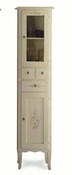 Состоит из шкафа со встроенной раковиной, овального зеркала с деревянной рамой, больших бра и узкого шкафа со стеклянным витражом.
