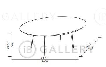 Столешница выполнена в форме капли. Она расположена на тонких металлических ножках, которые сужаются у основания.