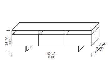 Трехдверный комод, выполненный в современном дизайне. Структура из термообработанного дуба. Оснащен открытыми отделениями вверху и распашными дверцами, скрывающими выдвижные ящики внизу.